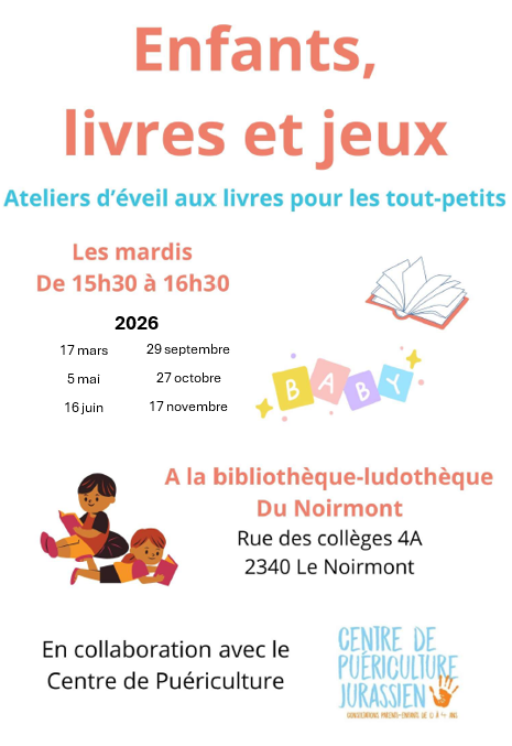 La Bibliothèque-Ludothèque du Noirmont invite les tout-petits à découvrir le plaisir des livres à travers des ateliers d’éveil ludiques et sensoriels.